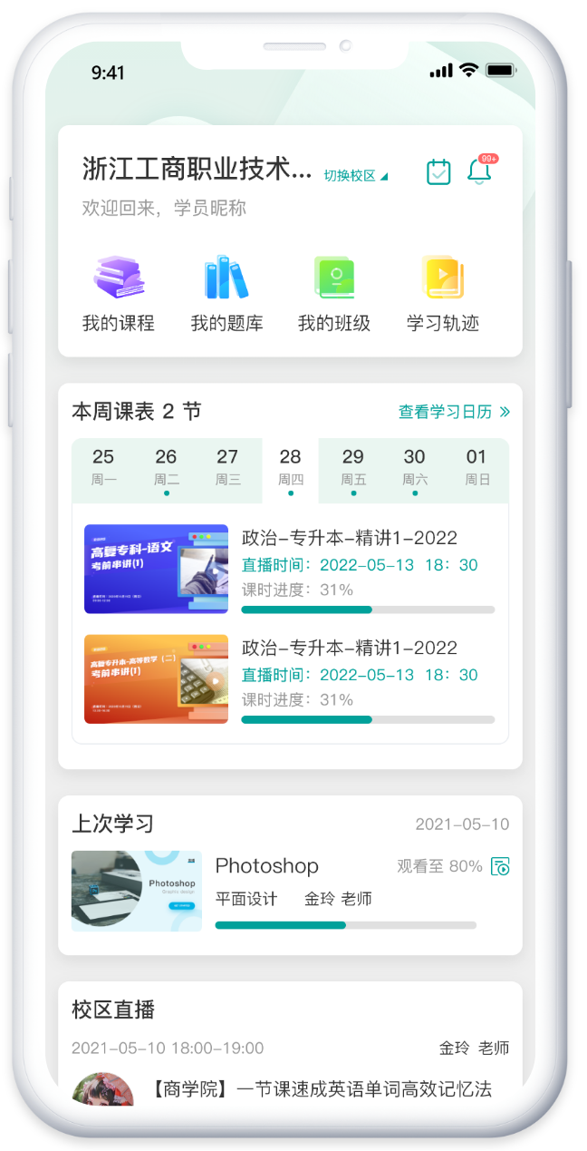 珍学网移动端学习平台,学生可使用移动端完成,直播观看、固定课程学习、作业、练习、刷题、考试等学习需要的跨终端综合性学习平台。让学员随时随地完成学习任务,使学员真正实现学习、生活、家庭、工作互相结合,成就更好人生。